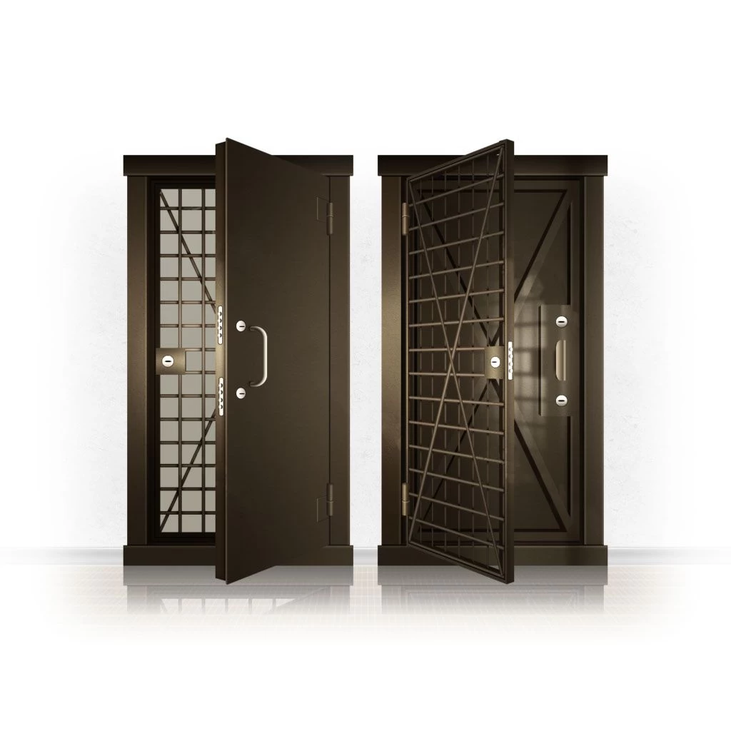 Металлические двери КХО и КХН представляют собой входные блоки, обладающие высоким уровнем взломостойкости и состоят из трех основных элементов: усиленного каркаса, сплошного металлического полотна и решетчатой двери. Дверной блок изготавливается из стального уголка 100*100 мм. Места крепления блока к стене цементируются и закрываются стальными наличниками шириной 40 мм. Крепеж заходит вглубь стены на 80 мм. В конструкции внешней створки монтируются ребра жесткости, для обшивки используется сталь толщиной не менее 3 мм. Внутренняя решетка изготавливается из прутка диаметром 16 мм. Размер ячеек решетки должен составлять не более 15 на 15 см. В точках пересечения прутья надежно приваривают друг к другу. В КХО и КХН необходимо поддерживать определенную температуру и влажность. Для этого внутреннее пространство глухой двери заполняется теплоизоляционным материалом, а по периметру двери приклеивается уплотнитель. Такие двери оборудуются замками с повышенным уровнем взломостойкости. Специализированные двери КХО и КХН в Канске могут быть оснащены сигнализацией, в конструкции могут быть проушины для навесного замка и элементами для опечатывания. Если идет речь о двери в комнату хранения оружия, в створке оборудуется окно для выдачи оружия и спец. средств, которое накрывается стальной дверцей.