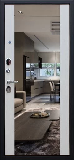 Надежная входная Дверь Вектор с зеркалом премиум класса по цене 49 953 руб. Большая толщина стали защитит от проникновения в ваш дом, квартиру или коттедж. Используется очень качественная фурнитура: замки, цилиндры, ручки, защелки. Покрытие и отделка двери изготовлено под внимательным контролем производителя. Дверь имеет долгий срок службы и гарантию.